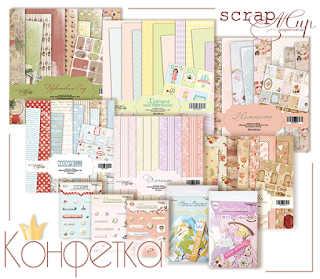Начну с конфеты, разыгрываемой ЧБ Scrap Мир. Это совсем молодой блог, а ещё и ТМ производитель бумаги и украшений. Лично мне некоторые коллекции ну очень-очень понравились!!!
